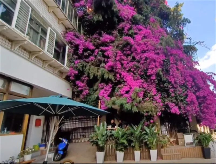 “这棵柏树和三角梅一直很受人欢迎。三角梅盛开的时候,很多年轻人来这里拍照,这里成了名副其实的‘网红’打卡地。”郭女士介绍。