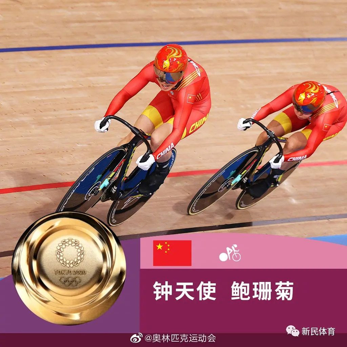 在下午结束的东京奥运会场地自行车女子团体争先赛金牌赛中,中国队选手钟天使与鲍珊菊以31.895秒的成绩夺冠战胜德国队,摘下本届奥运会首枚场地自行车金牌。在此前的争先赛预赛中,钟天使和鲍珊菊以31.804秒的成绩挺进金牌赛,同时创造了全新的世界纪录。