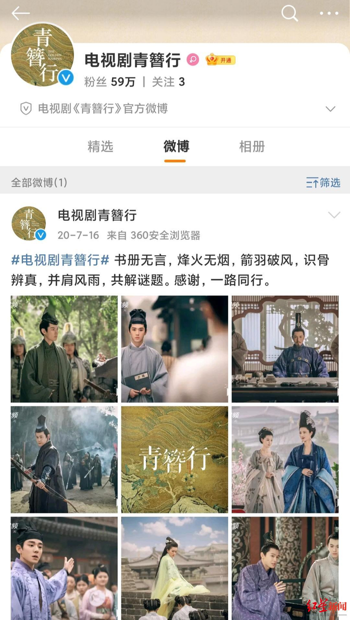 《青簪行》官方微博唯一保留内容
