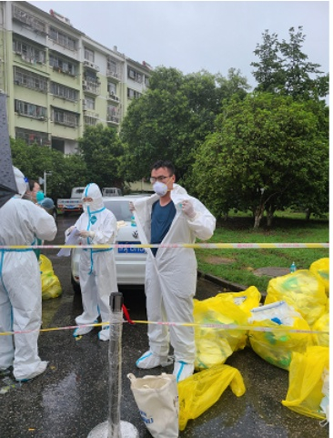 青年党员范明动情的说道:“今天特别感动,我们检测的玫瑰苑小区12栋的一家三口带了一箱瓶装水要给我们喝,还有一楼的阿姨煮了一大碗鸡蛋送过来,说我们为他们辛苦了。虽然我们很渴,但是穿着防护服不能喝水,也不能接受他们的馈赠,但是我们真的特别的感动,为了这些善良朴实的居民一定要奋斗到底!”