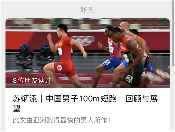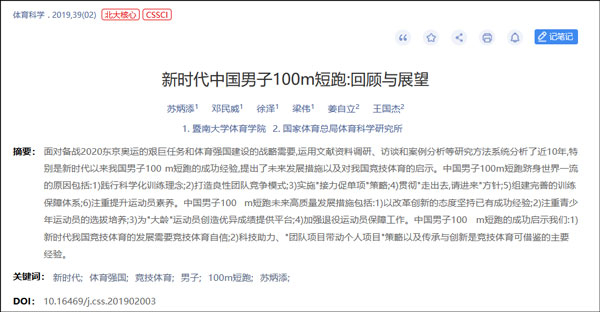 8月1日,一篇名为《新时代中国男子100m短跑:回顾与展望》的论文在社交网站走红,该文第一作者苏炳添当晚以32岁“高龄”打破男子百米短跑亚洲纪录,亲自为论文“跑数据”的学术精神令人敬佩,只不过,文章要更新下了,现在记录是9.83s了。