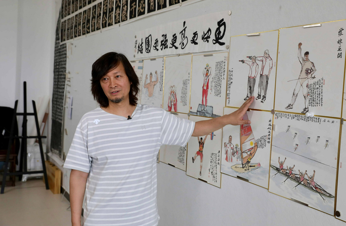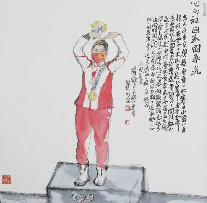 东京奥运会赛程过半,我国奥运健儿奋力拼搏、勇创佳绩。何加林时刻关注着总台对东京奥运会的转播报道,以其特有的中国画人物特写风格,创作出多幅风格清新、寓意深刻的作品,最高峰时曾一天以夺金健儿为主题连续创作六幅画作。