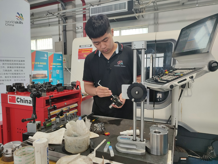 蔡夕忠介绍,过去三届世赛,基地的选手已经实现世赛数控铣项目三连冠。数控车、水处理技术项目上一届夺金,机电一体化项目夺银。
