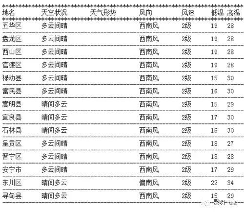 一起来看看云南各地区天气预报