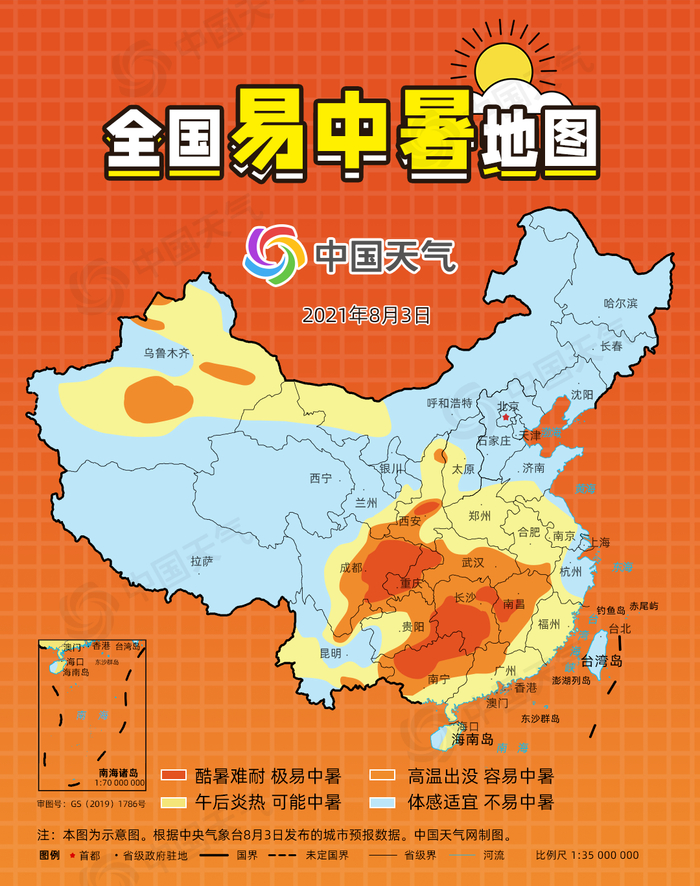 中国天气网发布全国易中暑地图