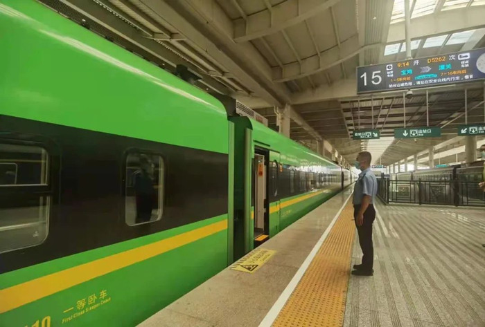 8月3日上午7时10分,D2562次“绿巨人”从宝鸡站驶出开往潼关,标志着宝鸡火车站首趟“复兴号”动集动车组(以下简称“绿巨人”)顺利开行。