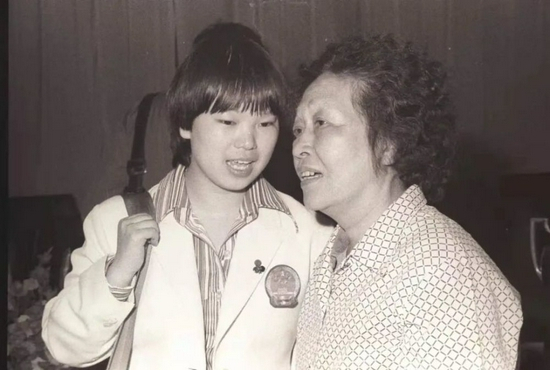 1983年,世界冠军倪夏莲与乒乓球前辈孙梅英