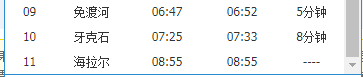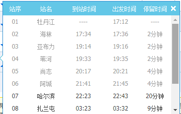 乘坐G1566次列车2车从淮北到天津南站,乘坐G2655次列车12车从天津西站到哈尔滨西站。乘坐K5175次列车(座位号:3车14号中铺)由哈尔滨站出发,前往海拉尔。