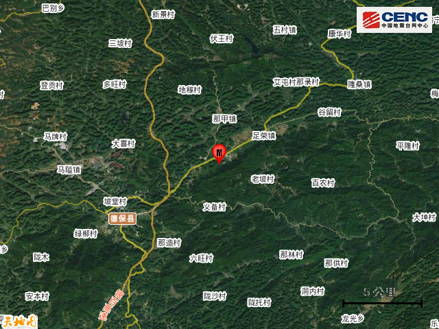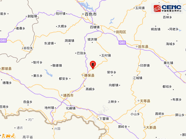 广西百色市德保县发生4.8级地震