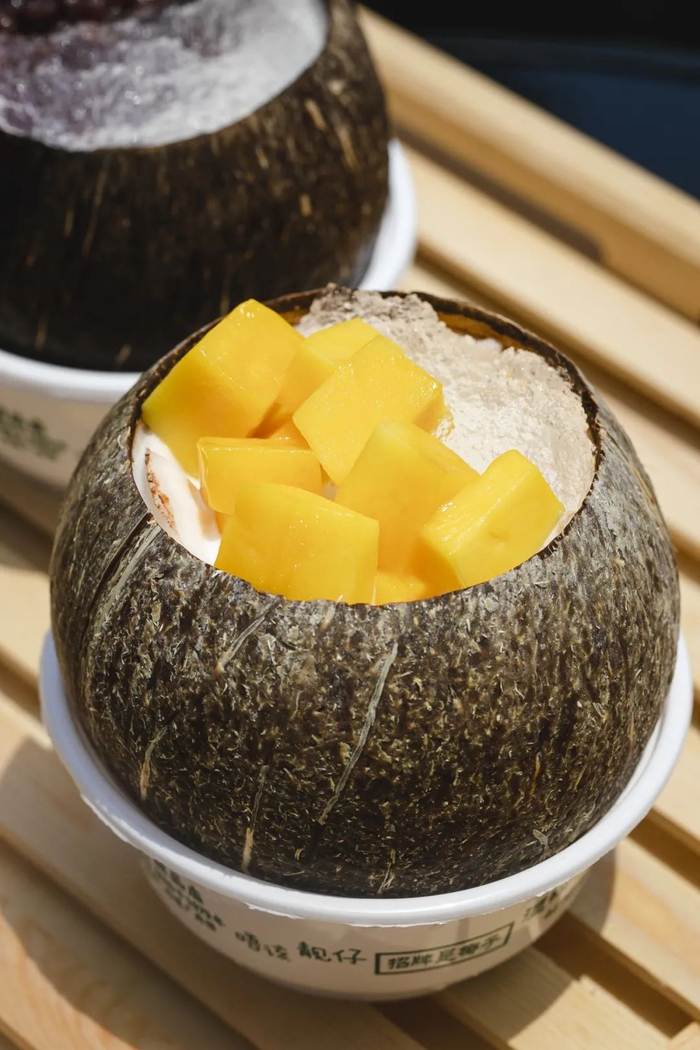 它家的椰皇冻曾获广州美食奖金奖,海南老椰+新鲜芒果+绵密东北大红豆,王炸组合,卖9.9元?不怕门店被挤爆嘛?