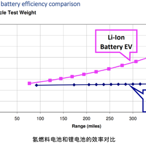 氢的能量密度较高。每千克氢燃料所含能量至少是每千克锂电池的130倍;体积能量密度(单位体积可储存能量大小)是锂电池的2倍,未来有望达到5倍。如下图所示,对氢燃料电池车而言,每增加一英里的里程数,需要的氢燃料的重量几乎可以忽略不计,但相比之下锂电池汽车却需要显著增加电池的重量与体积,势必会对电动汽车的结构设计和马达性能提出更高要求。加上氢燃料电池汽车在寒冷环境下启动和续航的技术突破,氢能在需要高能量、长续航和能应对极端气候的燃料的长途运输、航空、轮船、重工业等行业占据巨大优势。