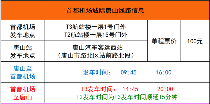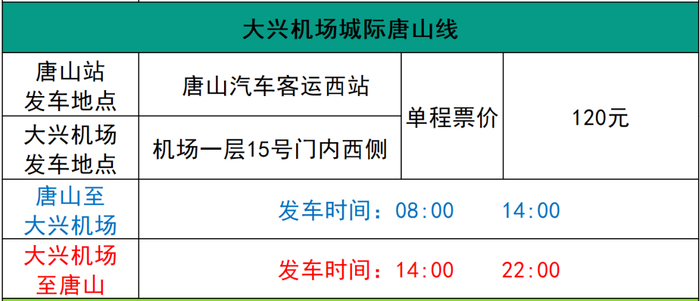 此外,自2021年8月8日起,首都机场城际唐山线将调整运营班次,具体情况如下: