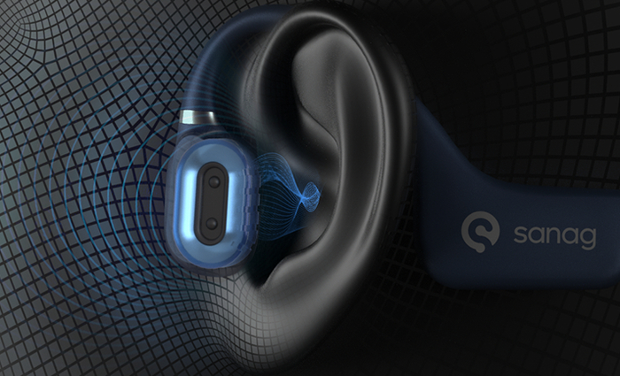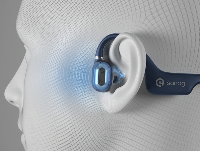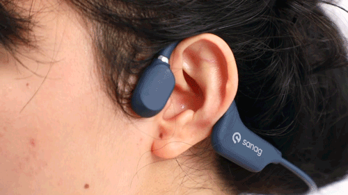 sanag骨传导蓝牙耳机佩戴时,不入耳朵,可以降低听觉细胞伤害,减少细菌滋生。