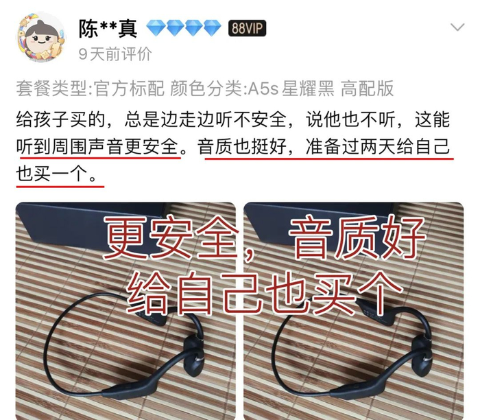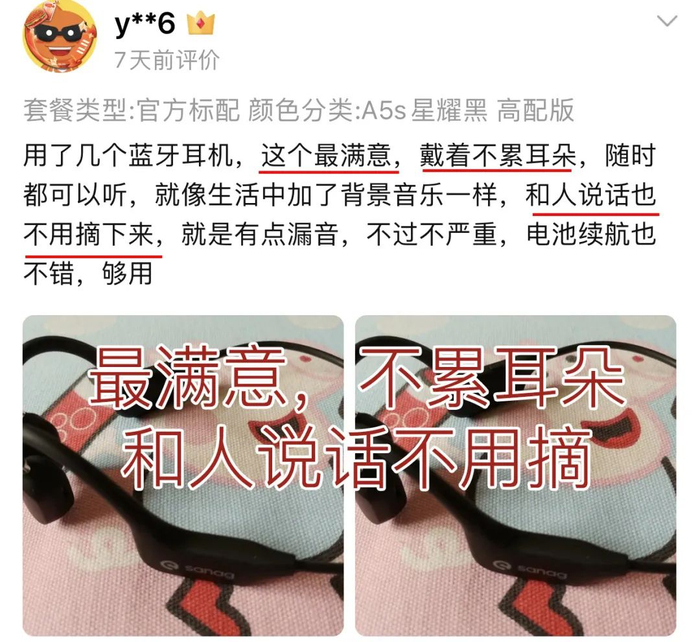 购买sanag骨传导蓝牙耳机的买家也是好评不断: