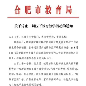 合肥市教育局发布通知:停止一切线下教育教学活动!