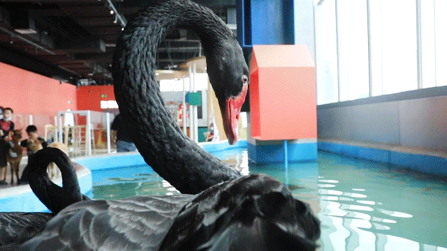 看看黑天鹅的优雅!人类与动物的关系密不可,如果想给它们喂食,可以到”小卖部“整点青菜投喂一下噢😯!
