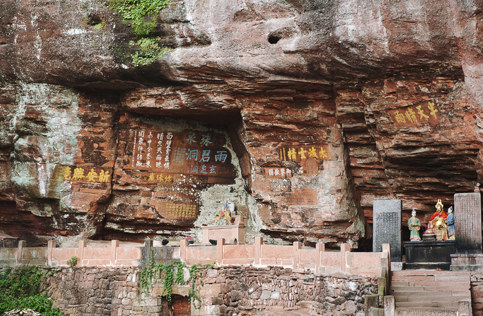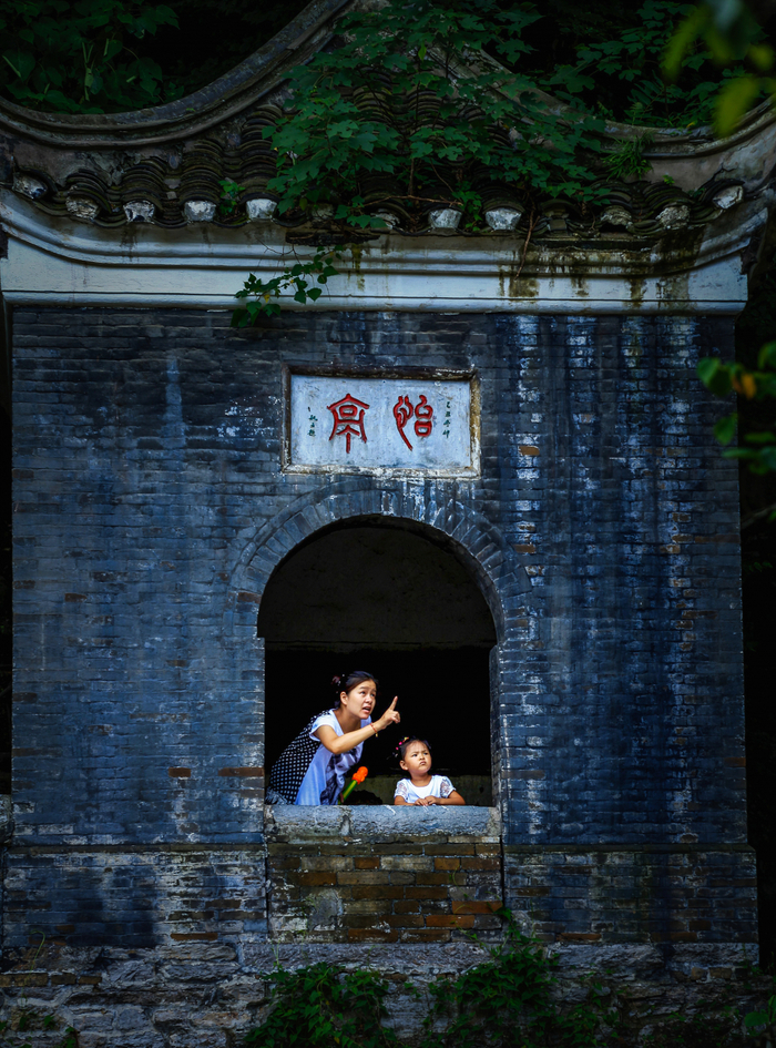 对于齐云山印象最深的是凿在石崖,嵌于洞穴,遍布全山的摩崖石刻。齐云山的石刻及碑刻年代最早为唐末,主要分布在罗汉洞、紫霄岩和石桥岩一带,共有一千多处。利用天然的石壁以刻文、造像或岩画,神韵俱佳,令人叹为观止。行至于此,一幅幅细看,一句句品读,领略古人风雅。山间有凉风拂过,轻轻吹动着石壁里缝隙间长出的绿色藤蔓。舒适清凉之感令人留恋其中,久久不愿离去。