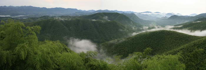 笄山竹海,为山而灵、因竹而秀。在安徽广德有这样一句话,“不登笄山,不知广德竹多”。广德,坐落在苏浙皖交界处,是“一地六县”长三角生态优先绿色发展产业集中合作区之一(“一地”,指的是上海市白茅岭农场,“六县”包括安徽广德市、安徽郎溪县、江苏溧阳市、江苏宜兴市、浙江长兴县、浙江安吉县,“一地六县”也被称为“长三角之心”)。笄山竹海,就藏于广德市卢村乡,它有着“万亩竹海”之美誉。竹连山,山连竹,满目苍翠,形成了一幅层层叠叠的竹画长卷。