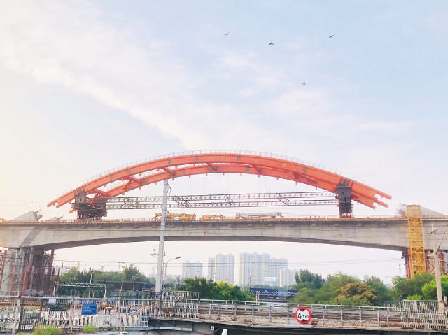 记者从中国铁路北京局集团有限公司获悉,8月5日18点18分,丰台站改建工程京广特大桥128米连续梁拱匀速平稳推移至拱座上,成功跨越G4京石高速公路,标志着丰台站改建工程最大跨度连续梁拱京广特大桥全桥正式贯通。据介绍,丰台站预计年底实现开通运营。