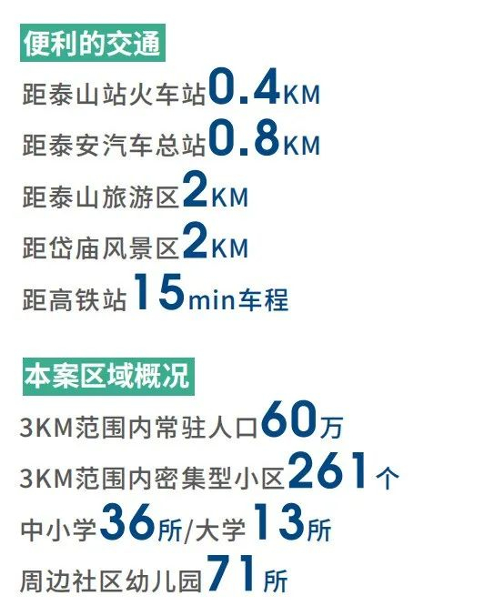 与此同时,庞大的消费群体同样是泰安大有境的一大优势。项目3公里范围内常住人口达60万,密集型小区261个,5公里内常住人口达120万,且作为泰山旅游必经之地,每年9000万游客吞吐量,近900亿旅游收入市场,泰安百年城央处,更有近10万龙潭路穿行客流,近4万火车站商旅人流,近8万财源街商圈消费客流,人气旺,财源聚,商业与投资价值前景不可估量!