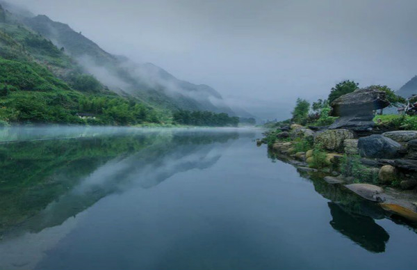岁月已千年,秋浦歌未断。如今的秋浦河依然风光秀美、河水清澈,犹如一座世外桃源般蜿蜒曲折点缀在这片翠绿的群山中,夏天行至秋浦河,若想仔细欣赏两岸美景,可以乘坐竹筏漂流。河畔不仅有山有水,还有很多藏匿在山水之中的原生态古村落。村落农舍错落有致,白墙灰瓦在青山绿水的掩映下,古朴自然。择一处停留,于山水之间掬一捧清水泼在脸上,凉爽之意沁人心脾。