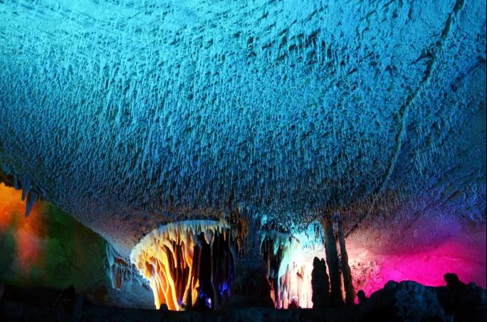 “入其中,宽广可容数百人。中有‘积翠台’、‘莲花柱’、‘华盖岩’、‘夕照光明’,五彩烂然,苍碧错列,奇不可尽述。”记载于明万历版《石埭县志》中的一段简短文字,为人们揭示了一片山河间的洞天世界。在石台仁里镇杜村,深藏着一处长达三千余米的大型溶洞,名为蓬莱仙洞。洞中曲径通幽,暗河涌动。石笋、石幔等精美的钟乳石景观遍布其间,宛如一座富丽堂皇的地下宫殿。进入其中,似是闯进了仙境,迎面而来的是一场视觉盛宴。