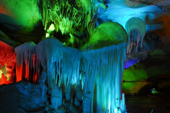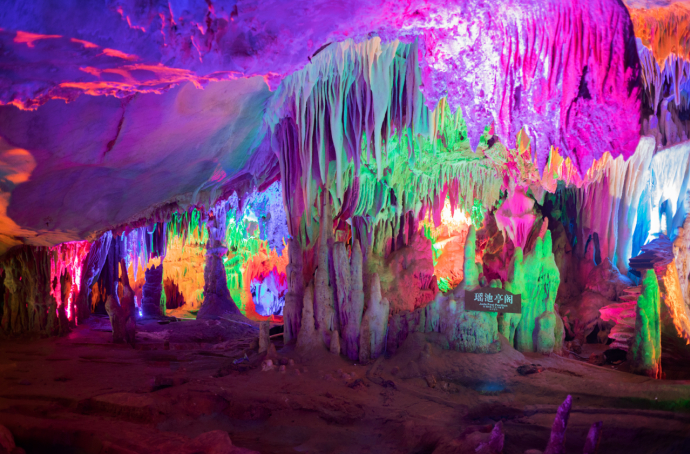 从洞内的天洞、中洞到地洞、地下河,每一处造型皆奇特,曲折回环,气势恢宏,总给人惊喜连连。到蓬莱仙洞,不可不看“蓬莱四绝”:迷幻神奇的巨幅山水壁画、白色透明的罗纱帐、精美雄浑的千佛山、洁白晶莹的天丝。其中位于“王母瑶池”景点内的罗纱帐,更被誉为镇洞之宝,位居四绝之首。