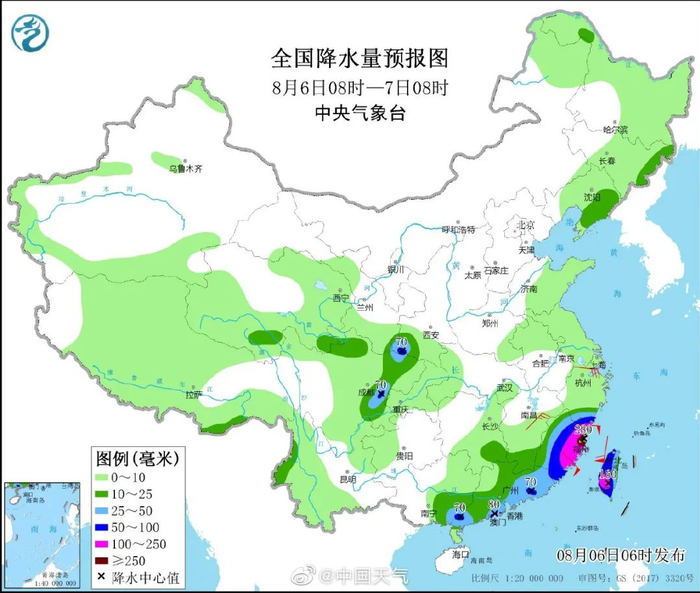 统计5日06时~6日06时累积雨量