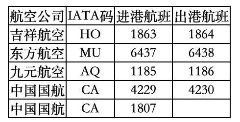 受台风影响取消航班明细