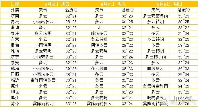 全省16地市天气预报