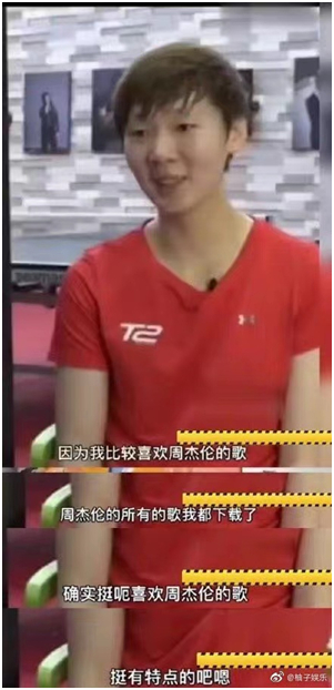 而在国乒队伍中,同样在东京为中国摘下团体金牌的女乒运动员孙颖莎和王曼昱,也都喜欢周杰伦。