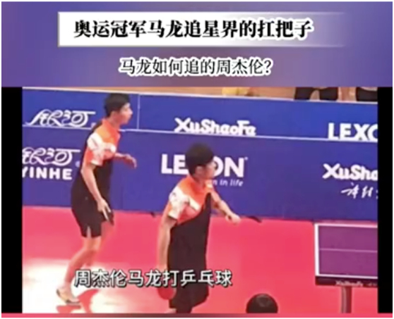 该条热搜下面,让网友记忆犹新的还有马龙“追星成功”,和周杰伦一起打乒乓球的画面↓