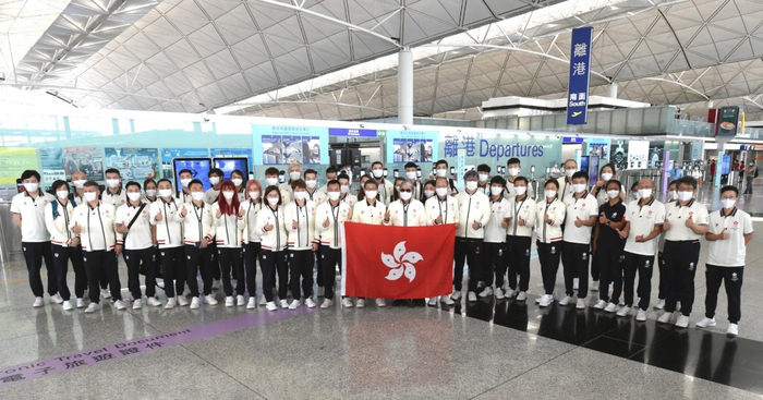 7月17日,中国香港奥运代表团部分成员飞赴东京备战参赛