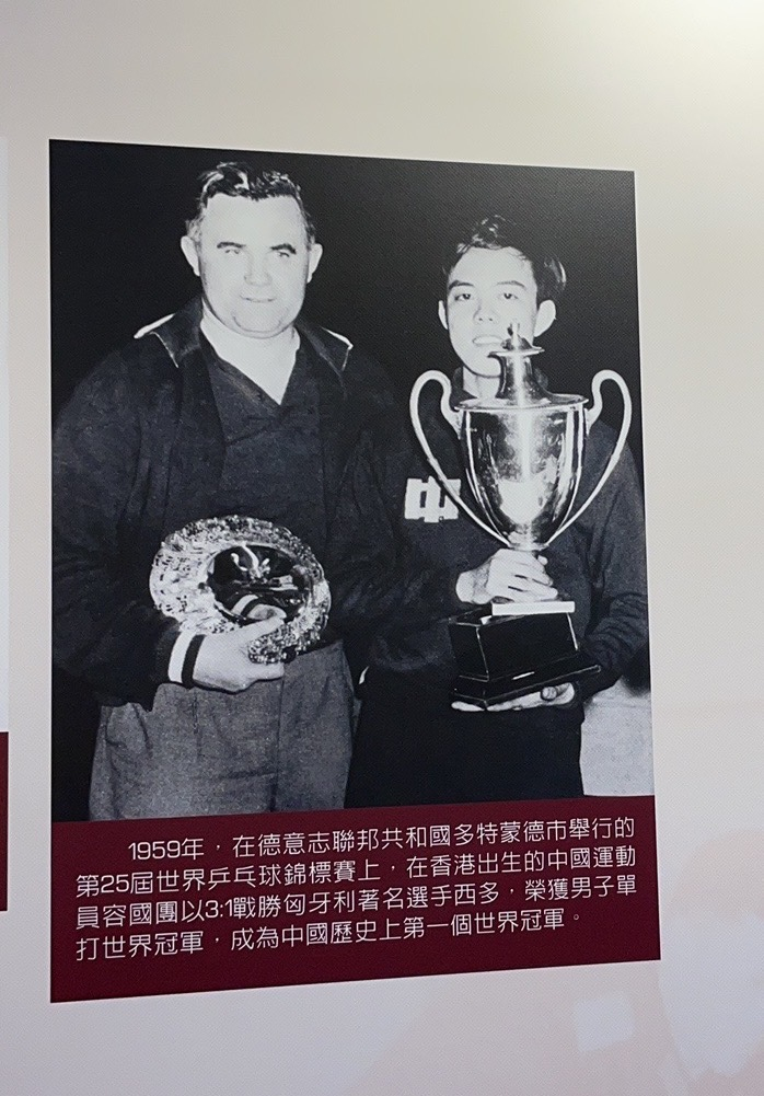 7月初,在香港会展中心举行的“百年伟业——庆祝中国共产党成立100周年大型主题展览”展示了容国团当年夺冠的照片 士心摄