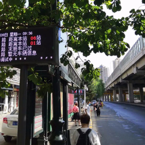 一些市民还会发现,在哈尔滨南直路、长江路、新阳路公交廊道,还有新式电子站牌。电子站牌为LED显示屏,在屏幕上显示日期、时间、温度,同时,还显示各线路车辆即将到站信息,一目了然。9日上午,在迎宾路公交站,电子站牌就显示:“20路,距离本站 1站”。