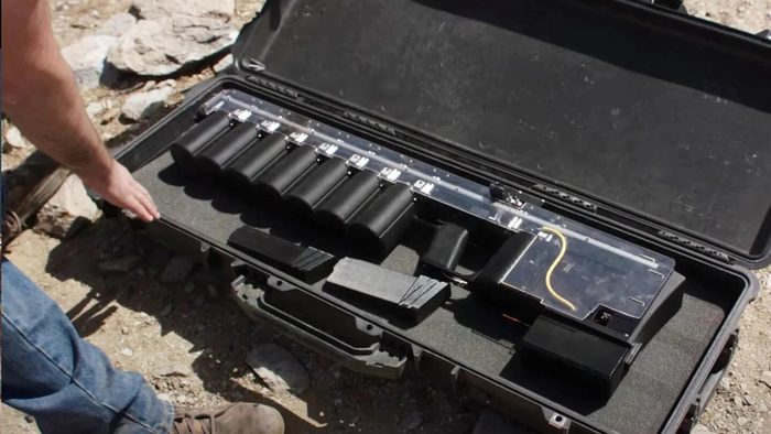 报道称,这款名为GR-1“铁砧”的高斯步枪(电磁线圈枪)由电弧闪光实验室公司(Arcflash Labs)制造,该公司的官网介绍,这种武器“能够将任何铁磁弹药(口径在。50以下)加速到200英尺/秒(约61米/秒),能够产生100焦耳的动能,枪口能量达到一些。22口径步枪的水平”,这是其成为“有史以来向公众出售的威力最大的电磁步枪”。