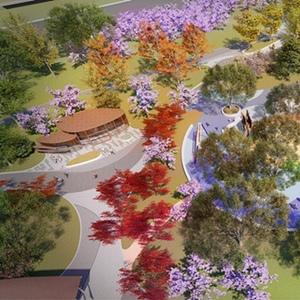 两区:分别是新品植物水园和樱花大草坪,丰富公园内的景观构造。