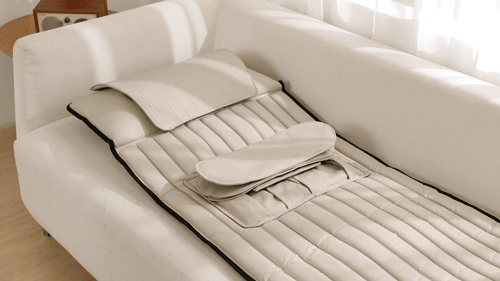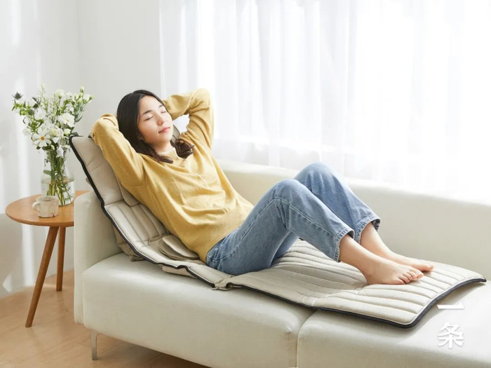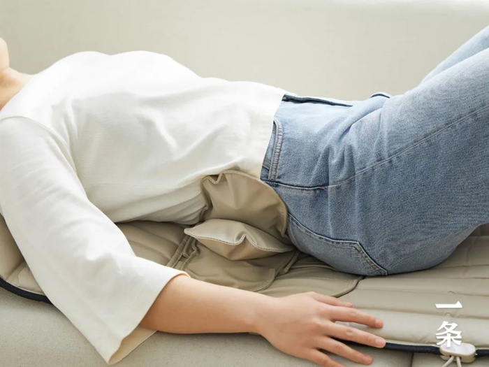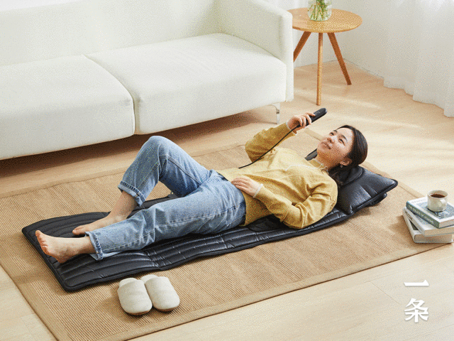 你可以像这样将按摩垫立起来,再把后背对准揉捏区域,就能让后背紧绷的肌肉也跟着舒坦舒坦。