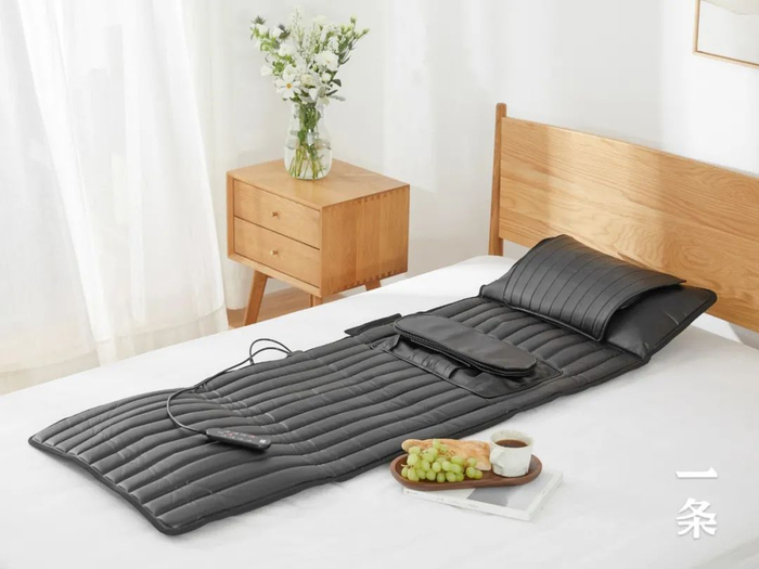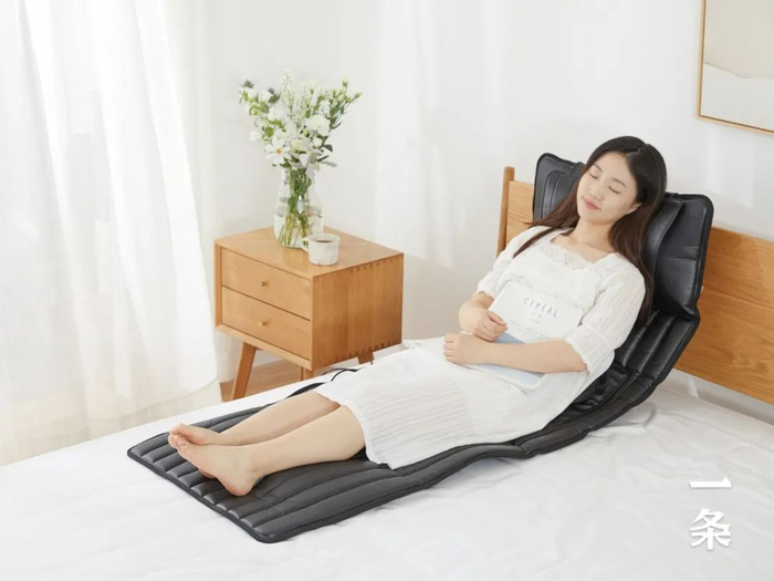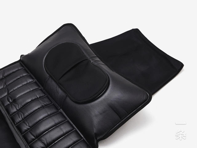 按摩垫的主要部分材质是皮革,看起来就很高档,躺在上面也很舒适。