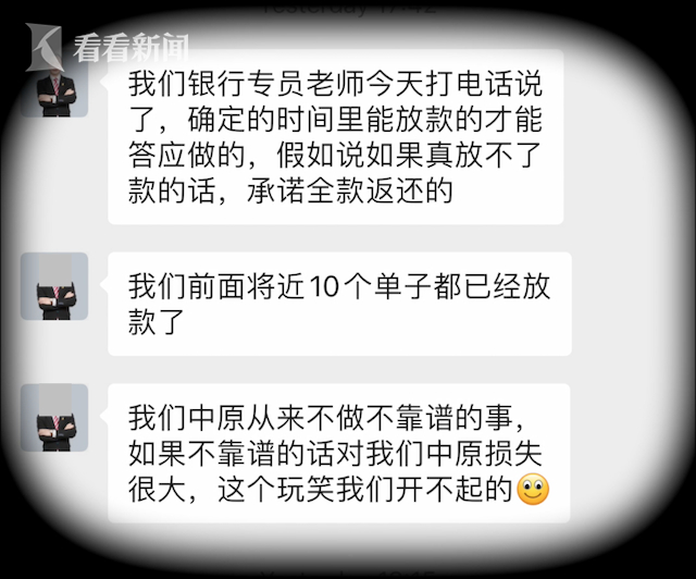 看看新闻Knews记者走访发现,这款交易产品的三方,誉萃投资就是中原地产的贷款部门,负责客源;而住房置业则负责整个交易流程的担保;银行根据担保进行放款。三方形成紧密的配合关系。“这个模式属于我们公司、银行和住房置业三方统一拟定的一个操作模式。”一位贷款负责人告诉记者。