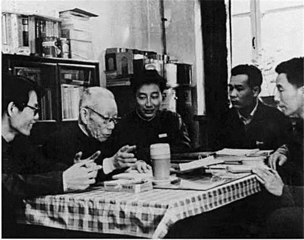 1978年,吕叔湘(左二)与廖秋忠一起指导研究生。资料图片