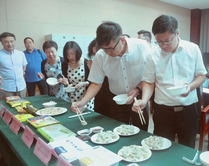 在研讨会现场,记者见到了殊趣食品(上海)有限公司带来的“理象国”黑猪肉系列水饺产品。其中,北方家庭最常见的猪肉虾仁韭菜三鲜水饺,面皮筋道,自带麦香,很像自己在家手擀的皮,同时,味道又实现了升级。对于速冻水饺这类产品来说,消费者最常反映的问题就是淡而无味。而全民健康生活方式膳食行动倡导的“三减三健”,“减盐”居于首位。于是,在坚持控盐理念的同时,让速冻水饺实现淡而有味,便成为“理象国”创新的突破口。现场工作人员介绍,为了水饺的鲜香品质,这款水饺的原料选用产自海南的窄叶韭菜,搭配鲜嫩的白对虾仁,浓郁的韭菜香也遮不住虾仁的鲜甜口味。而鸡蛋也是先炒制再入馅,这样口感层次更丰富。最重要的包制环节,完全是手工制作,因此饺皮更为筋道。