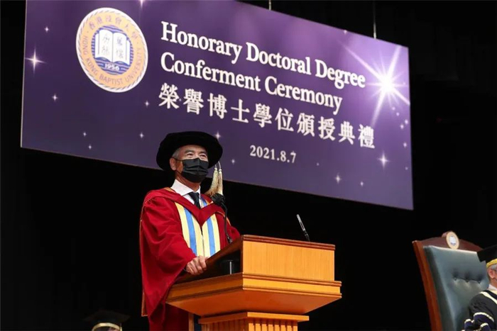 浸大给周润发颁奖是这样夸他的:周博士是一颗国际巨星,亦是香港最受爱戴和欢迎的公众人物,影迷跨越不同年代。从他身上可以见证香港电影的黄金时代,他的演绎亦被视为影艺专业的标竿。他热心公益,捐出亿元财产,成立慈善基金会,帮助弱势社群。