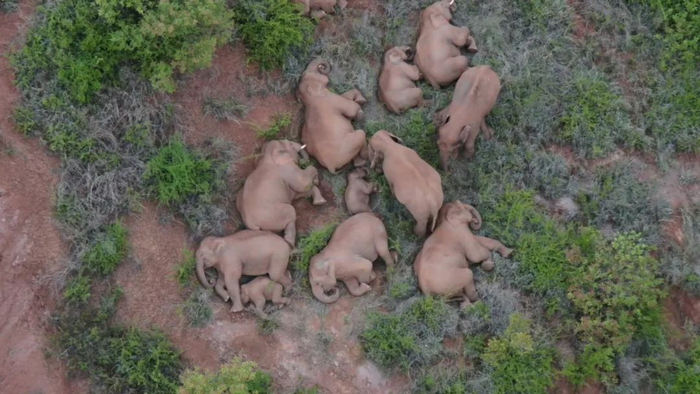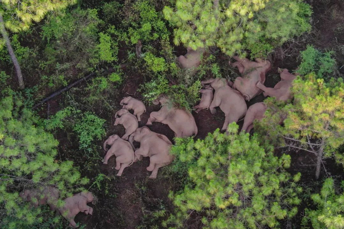 6月17日,象群在玉溪市易门县十街乡。(云南省森林消防总队)