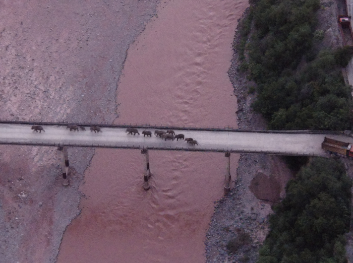 8月8日,北移亚洲象群跨越元江干流。(云南省森林消防总队)