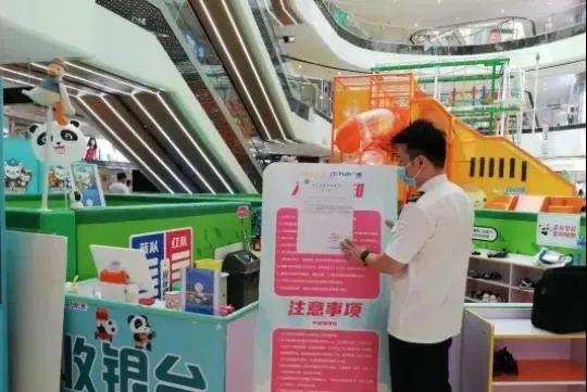 执法人员督查六安万达儿童娱乐有限公司发现其未落实六安市新冠肺炎疫情防控指挥部第12号通告中“密闭式娱乐休闲场所一律暂停营业”的规定,责令关停。