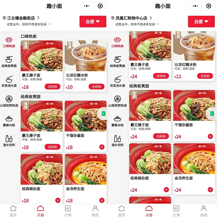 记者注意到,趣小面点餐方式与传统小面馆有着较大区别,必须用手机扫码桌上二维码进入小程序,通过线上支付进行下单。取餐方式为堂食、自提,并支持外卖。