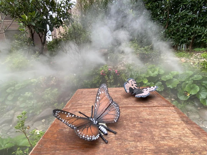 鸢尾池塘中,窜条鱼游来游去,螺蛳、饰纹姬蛙和藻类成了“好朋友”。一只红蜻蜓轻盈地掠过水面后,静静地停留在一朵已经闭合的莲花上。通过红外线相机,可以看到夜间黄鼠狼、貉经常出现在池塘边,饮水、觅食或洗澡,“一丘之貉出浴图”生动有趣。池塘旁,种植有鸢尾、蕨类植物、三叶海棠、红枫、柑橘、枇杷、石榴等。一只颜色鲜艳的斐豹蛱蝶翩翩飞舞。不一会儿,一只黑色的玉带凤蝶也加入进来。华东师范大学生命科学学院副教授何祝清解释,蝴蝶多的原因主要是这里农药少;有蝴蝶的寄主植物,幼虫有东西吃,成虫有花来吸花蜜,像花园里柑橘的叶子就是玉带凤蝶幼虫爱吃的食物。