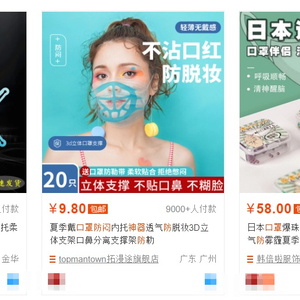 闷热的天气加上疫情防控的需要,大家出门时必须坚持戴口罩,不过时间一久,佩戴口罩又闷又热,所以最近一种口罩防闷神器在网上热销。所谓的“神器”就是个塑料支架,售价从2元到20元不等。