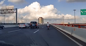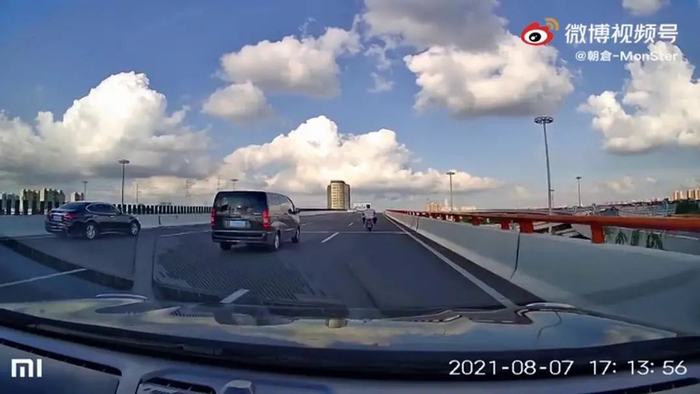 8月7日下午5点10分左右,网友的车辆刚从上中路隧道驶出,此时一辆电动自行车正好行驶在前方。